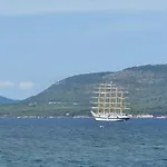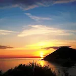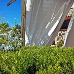 Umgeben von grünen Flächen stellt die Gasthaus Arcamyrtus eine Terrasse zur Verfügung, wo Gäste einen Blick auf die Bucht genießen können.
